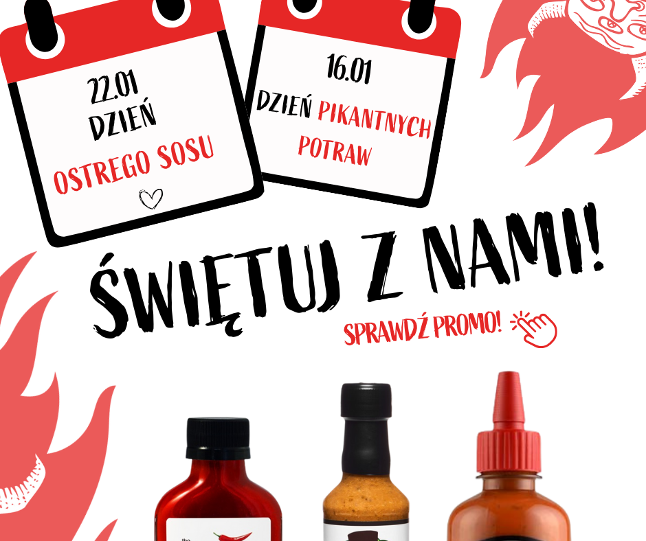 Dzień Pikantnych Potraw (16.01) i Dzień Ostrego Sosu (22.01) naszym zdaniem przypadają w styczniu nieprzypadkowo – to najlepsza pora, by rozgrzać swoje kubki smakowe i zrobić nieco hałasu w kuchni.