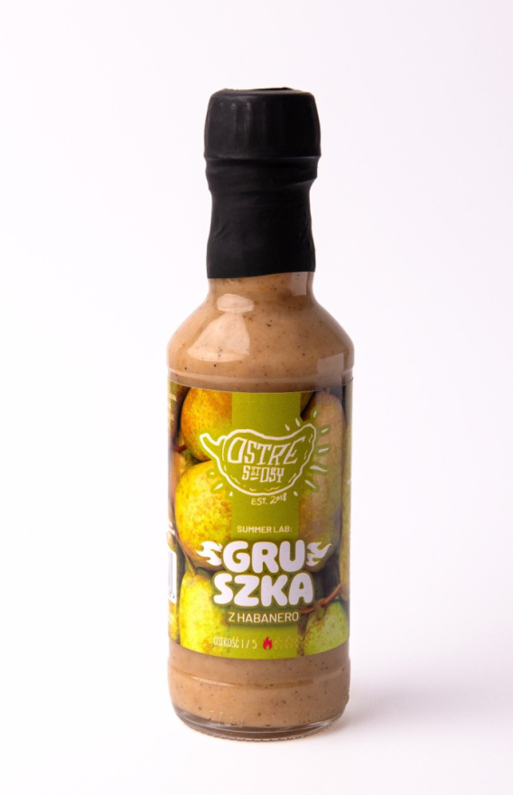 Sos Ostre Sztosy Gruszka z Habanero zaskoczy większość Ostrożerców! To nietypowe połączenie słodkiej, intensywnej gruszki z ostrym Habanero – po prostu smak późnego lata zamknięty w butelce. Choć gruszki kojarzą się skrajnie słodko, ten sos to nie jest przecukrzony ulepek – owoce są jak najbardziej wyczuwalne, ale w towarzystwie czosnku, cebuli i oczywiście – papryki – zyskują nowy, słodko-wytrawny wymiar. O balans smaku dba również miód i starty imbir, całość jest bardzo harmonijna i jednocześnie intensywna.